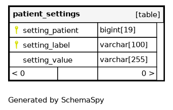 | PRIMARY | Primary key | Asc/Asc | setting_patient + setting_label |