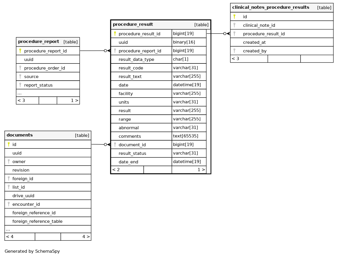 | PRIMARY | Primary key | Asc | procedure_result_id |