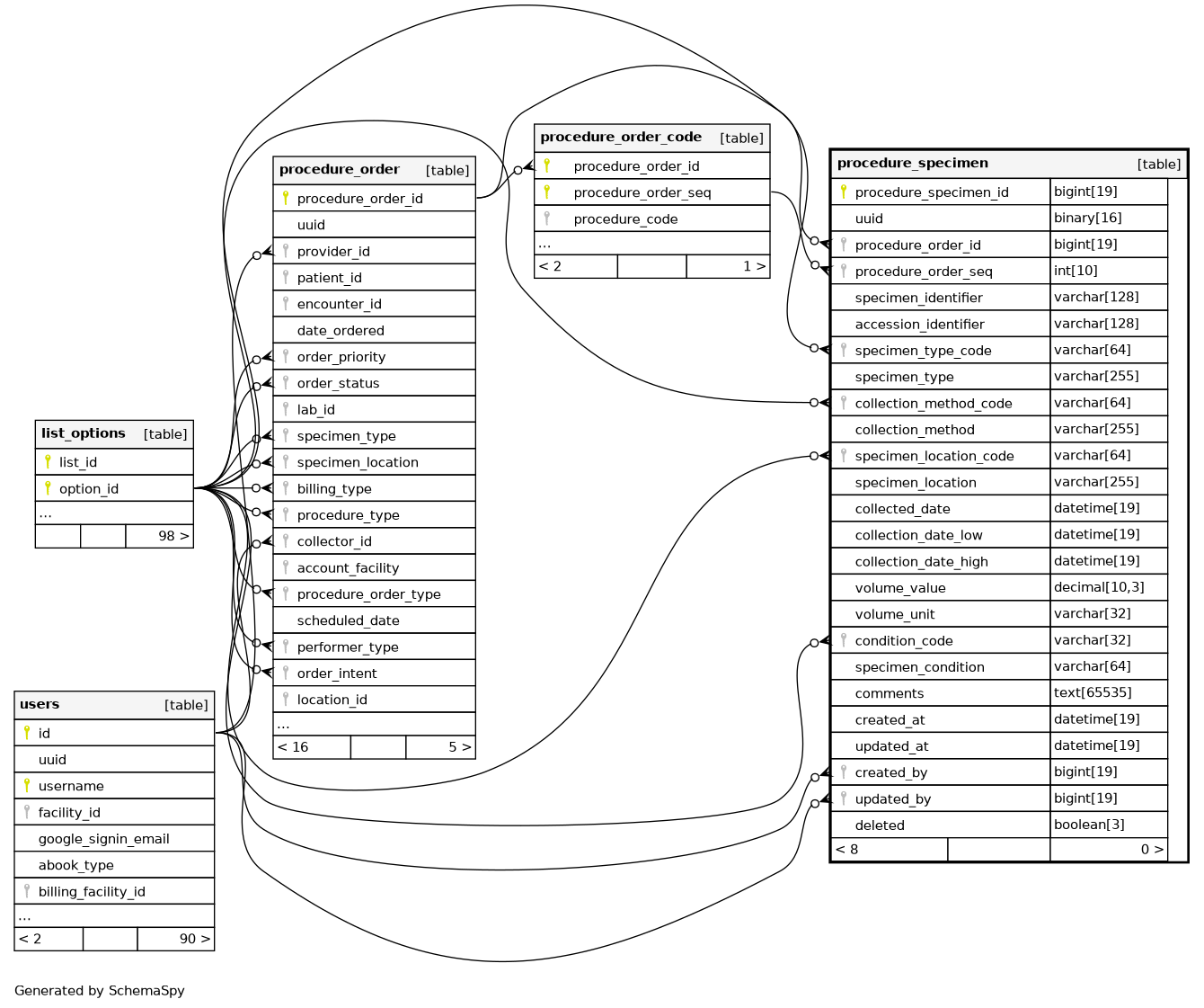 | PRIMARY | Primary key | Asc | procedure_specimen_id |