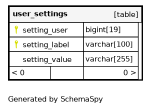 | PRIMARY | Primary key | Asc/Asc | setting_user + setting_label |