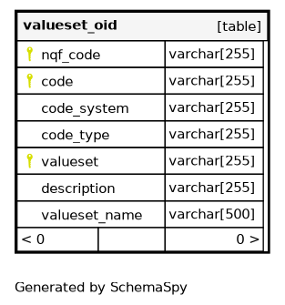 | PRIMARY | Primary key | Asc/Asc/Asc | nqf_code + code + valueset |